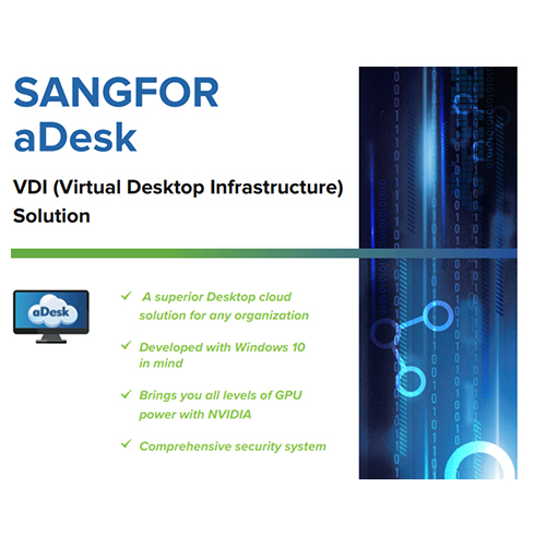 Sangfor aDesk is a one-stop Virtual Desktop Infrastructure (VDI) solution that helps your business evolve effortlessly to a digital workspace environment, suitable for secure office, work-from-anywhere scenarios, and more.